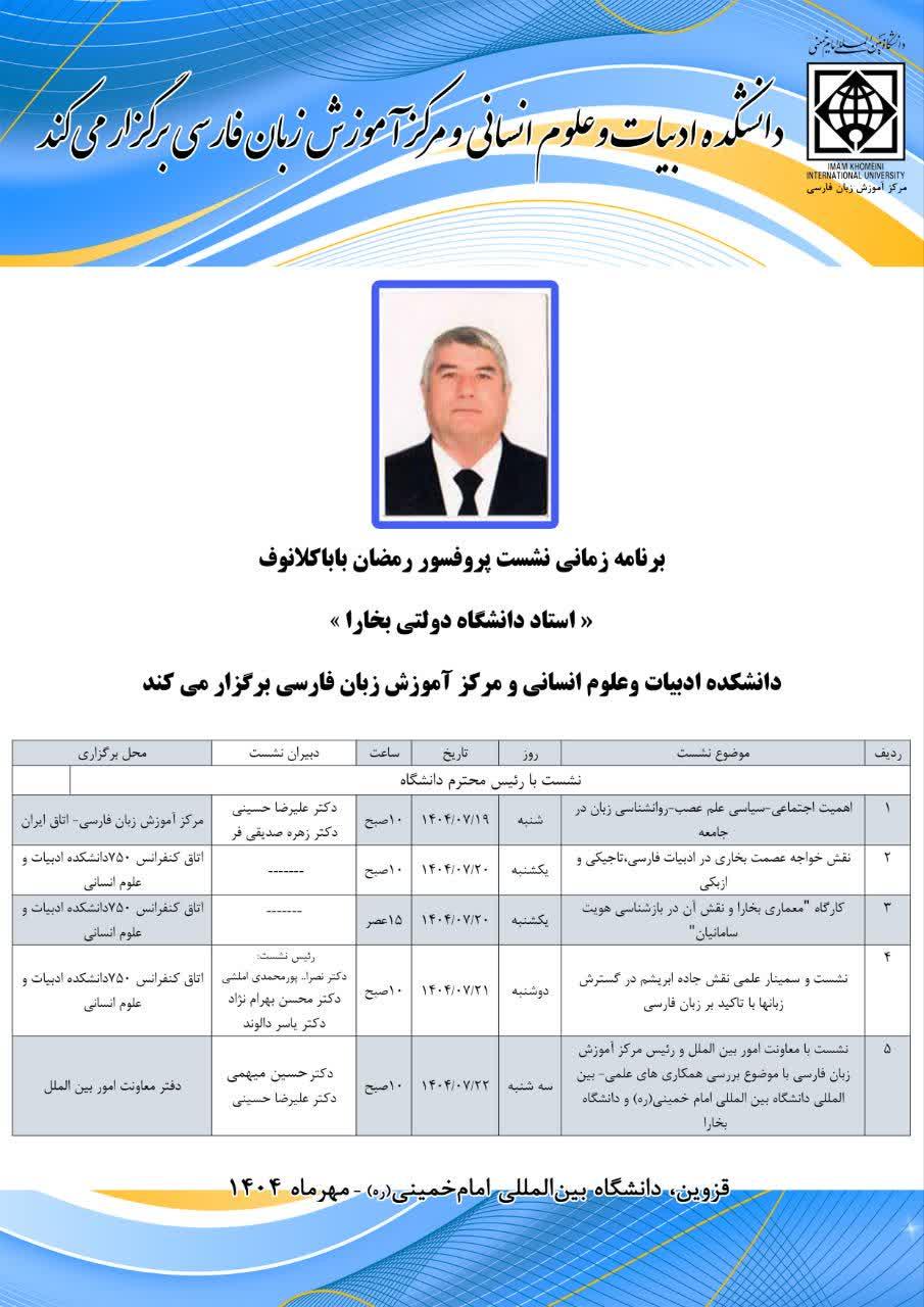 💢نشست علمی پروفسور رمضان باباکلانف (استاد دانشگاه دولتی بخارا) در دانشگاه بینالمللی امامخمینی(ره)/ مهرماه ۱۴۰۴